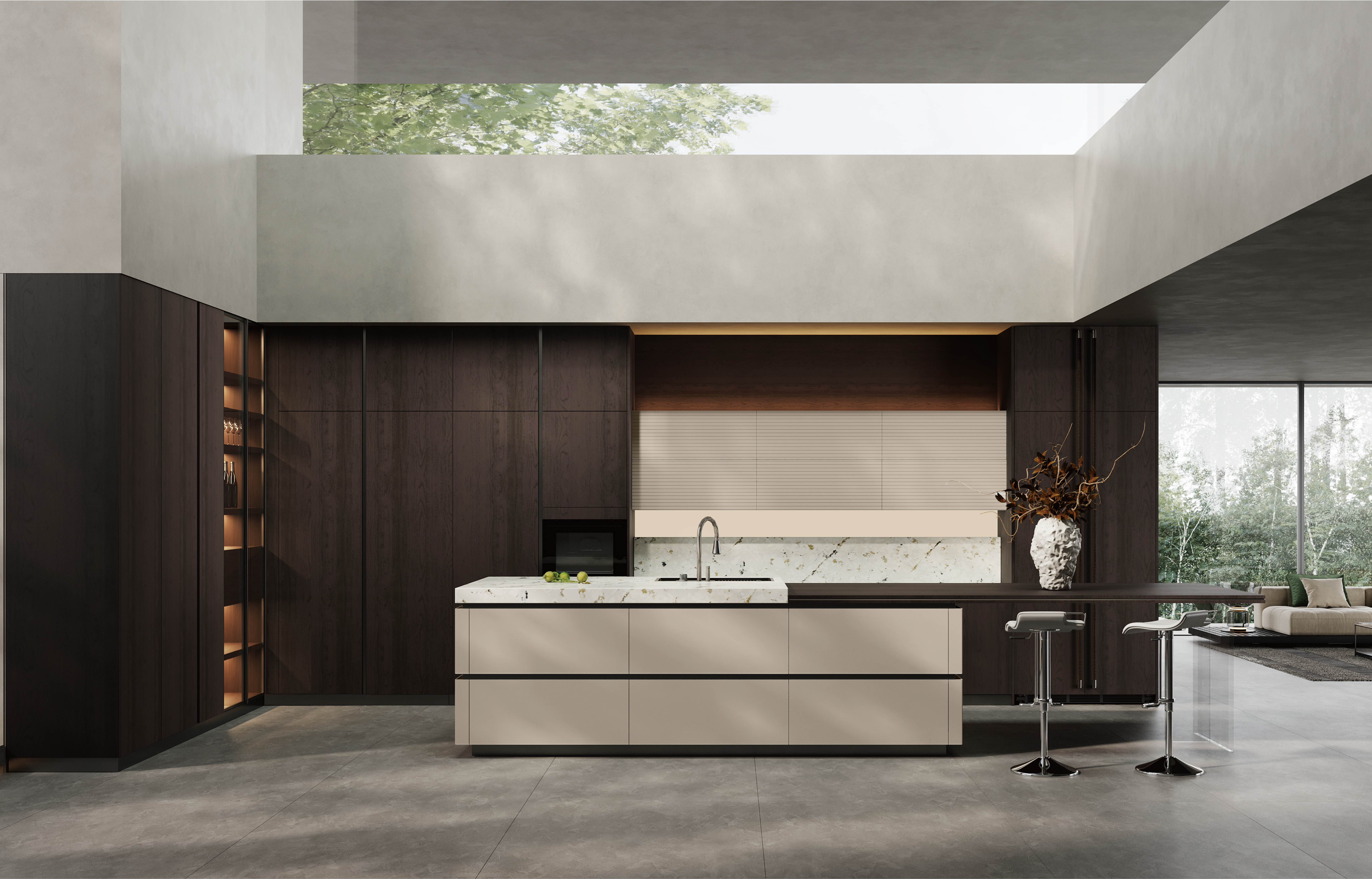 通过雷火电竞厨柜量体裁柜,定制出适合主厨下厨的烹饪区和洗涤区的舒适高度。